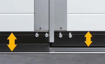 Регулируемый профиль порога с гибким уплотнением выравнивает, несмотря на плоскую конструкцию, небольшие неровности пола и обеспечивает оптимальное уплотнение нижней кромки ворот.