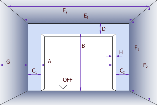 F2 – высота потолка от OFF, сзади;